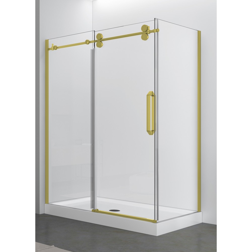 Adopt the industrial style of the Apollon collection. Made of 10 mm tempered glass, the sliding shower door is mounted on a trendy visible roller system that ensures a silent opening and closing every time. You will love its matte gold rounded accents in the rail mechanism that accentuate the modern look of the shower.