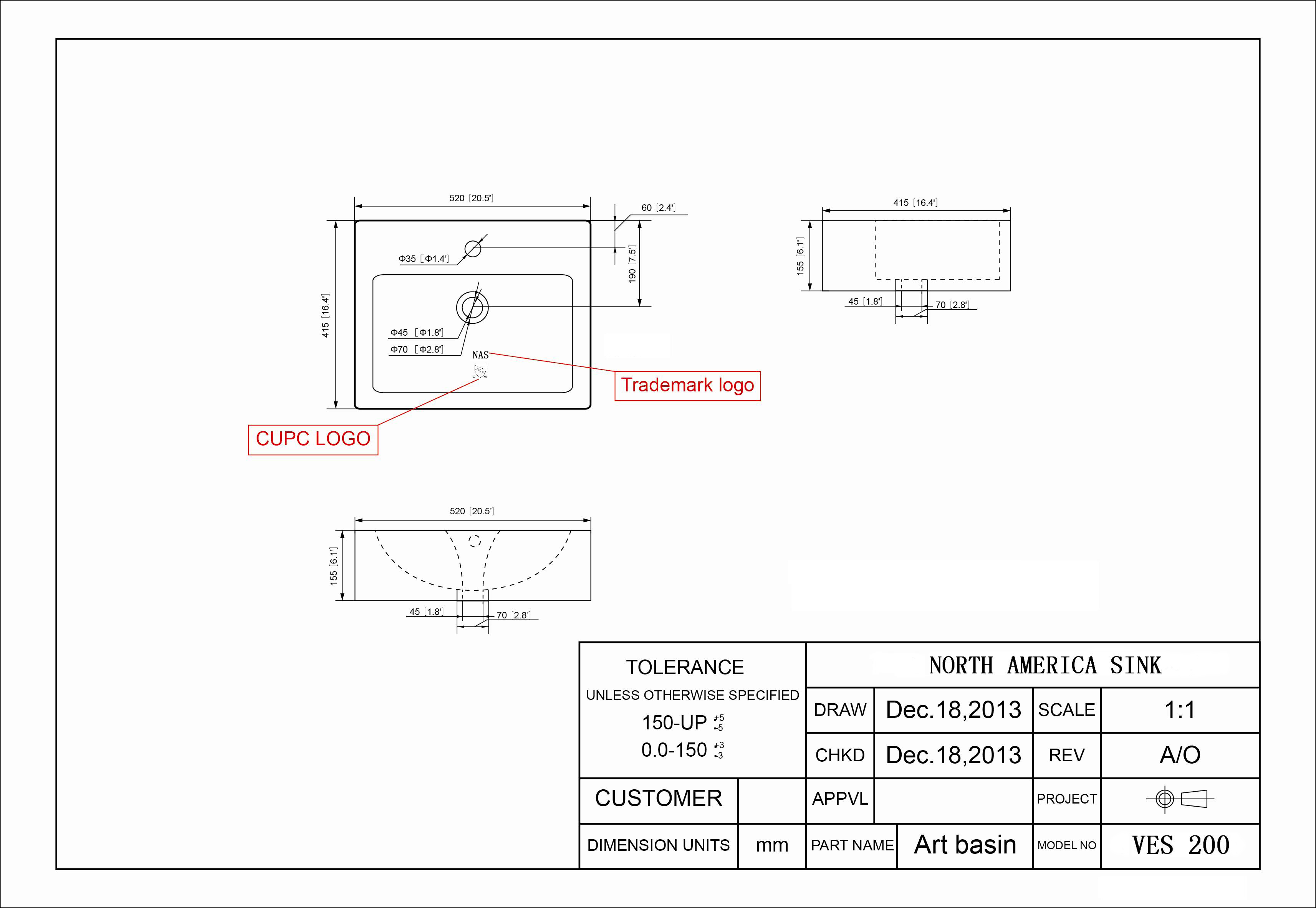 Counter top basin with one hole overflow and a faucet hole pre-drilled.