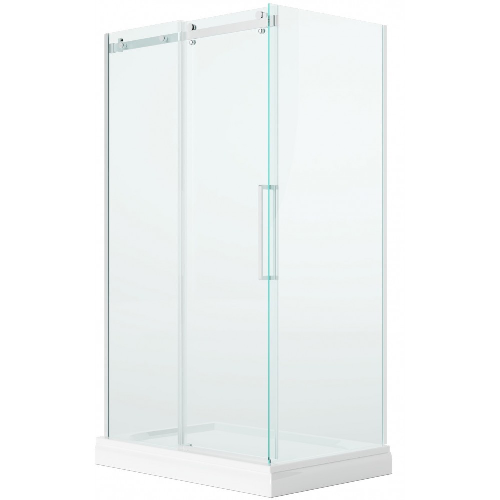 Adopt the industrial style of the Mikotos collection. Made from 10 mm tempered glass, the sliding shower door is mounted on a very trendy visible roller system which ensures silent opening and closing every time. You will love its squared chrome accents in the rail mechanism, matte white accentuate the modern look of the shower. Includes the door, the fixed side on the front, the hardware and the luxurious interior and exterior stainless steel handles.