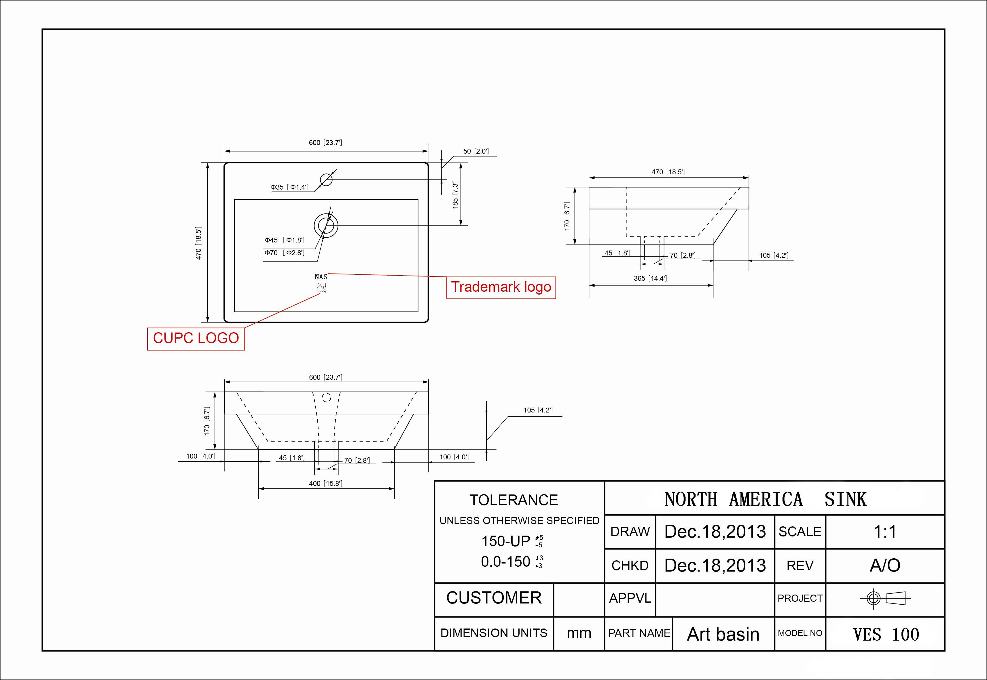 Counter top basin with one hole overflow