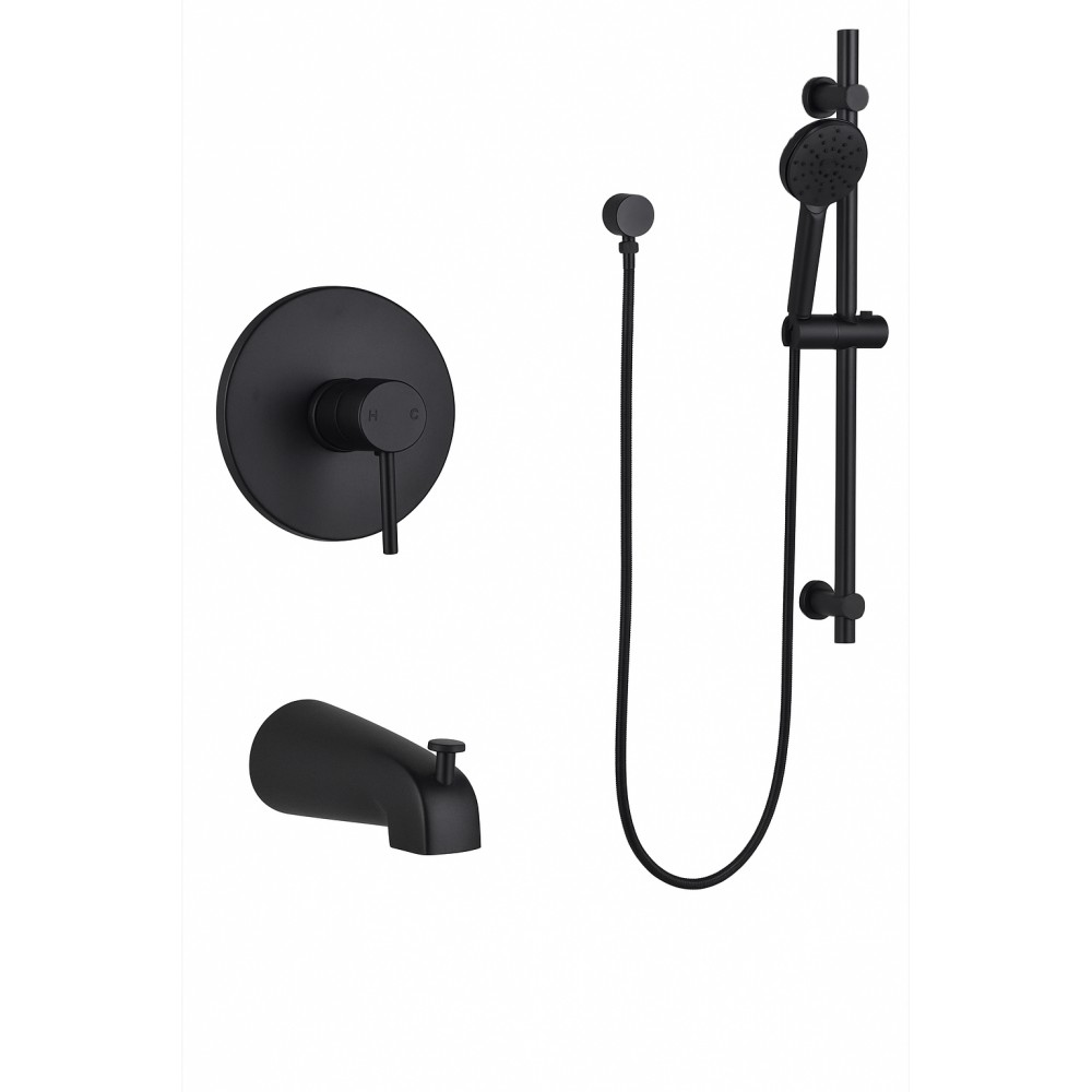 Experience versatility and sleek design with this wall-mounted bath and shower faucet set. The set includes a pressure-balanced valve, a 3-function handheld sprayer with a sliding bar, and a matching tub spout — all crafted to deliver lasting performance and comfort.