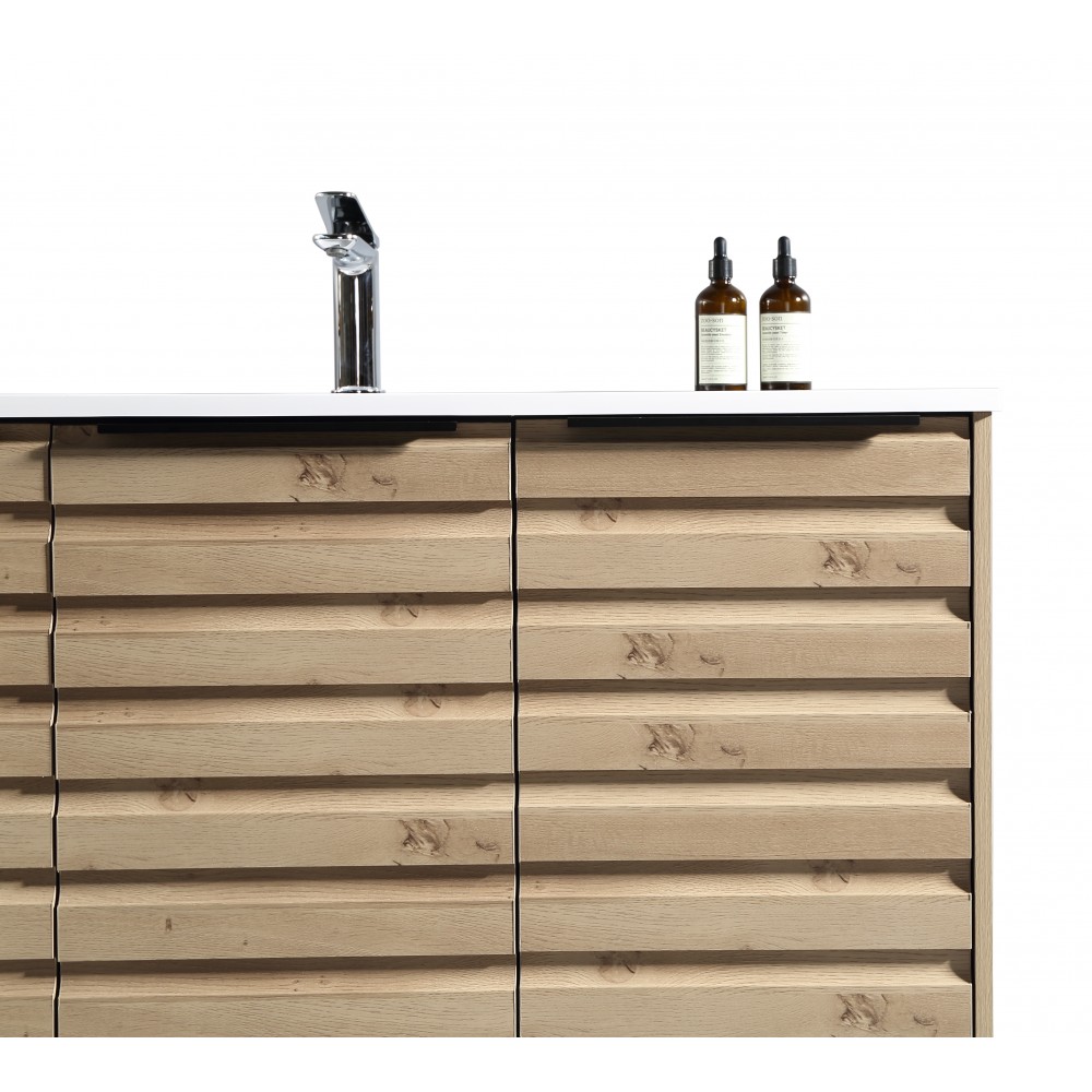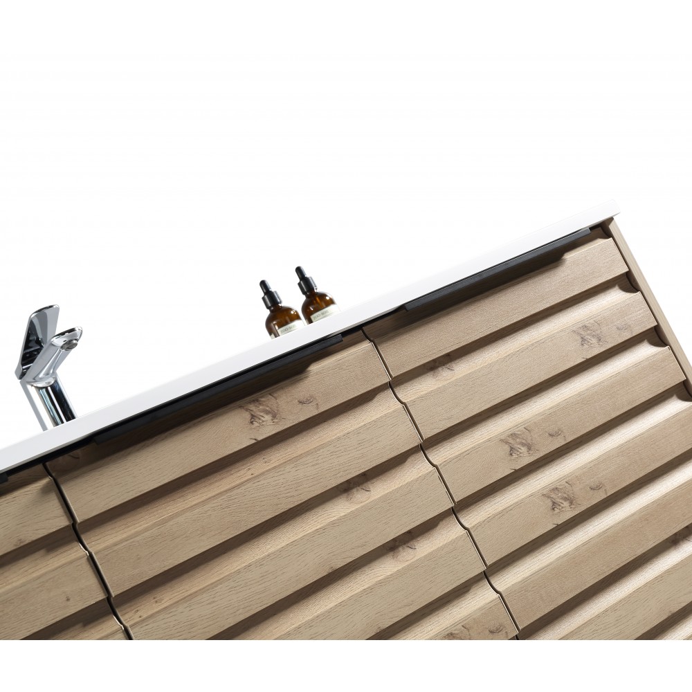 Horizontal fluted front in Zurich Oak finish for a modern, textural look.