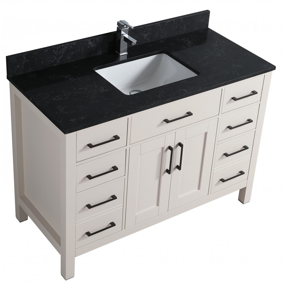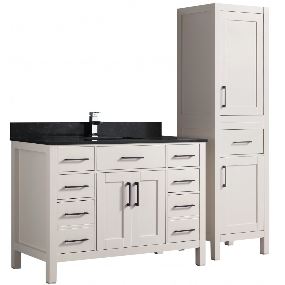 Choosing the Goli collection ensures a modern touch to your bathroom that will not go unnoticed. Select the countertop of your choice in the vanity top section. The Manila vanity is made of high-quality solid wood and is equipped with solid, durable, and superior quality hardware. It is made up of 4 drawers and 2 slow-closing doors. Opt for matching Lyon lingerie in the same color to complete your set, sold in the “Side furniture” section.