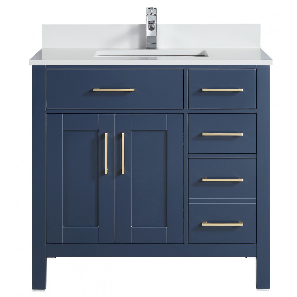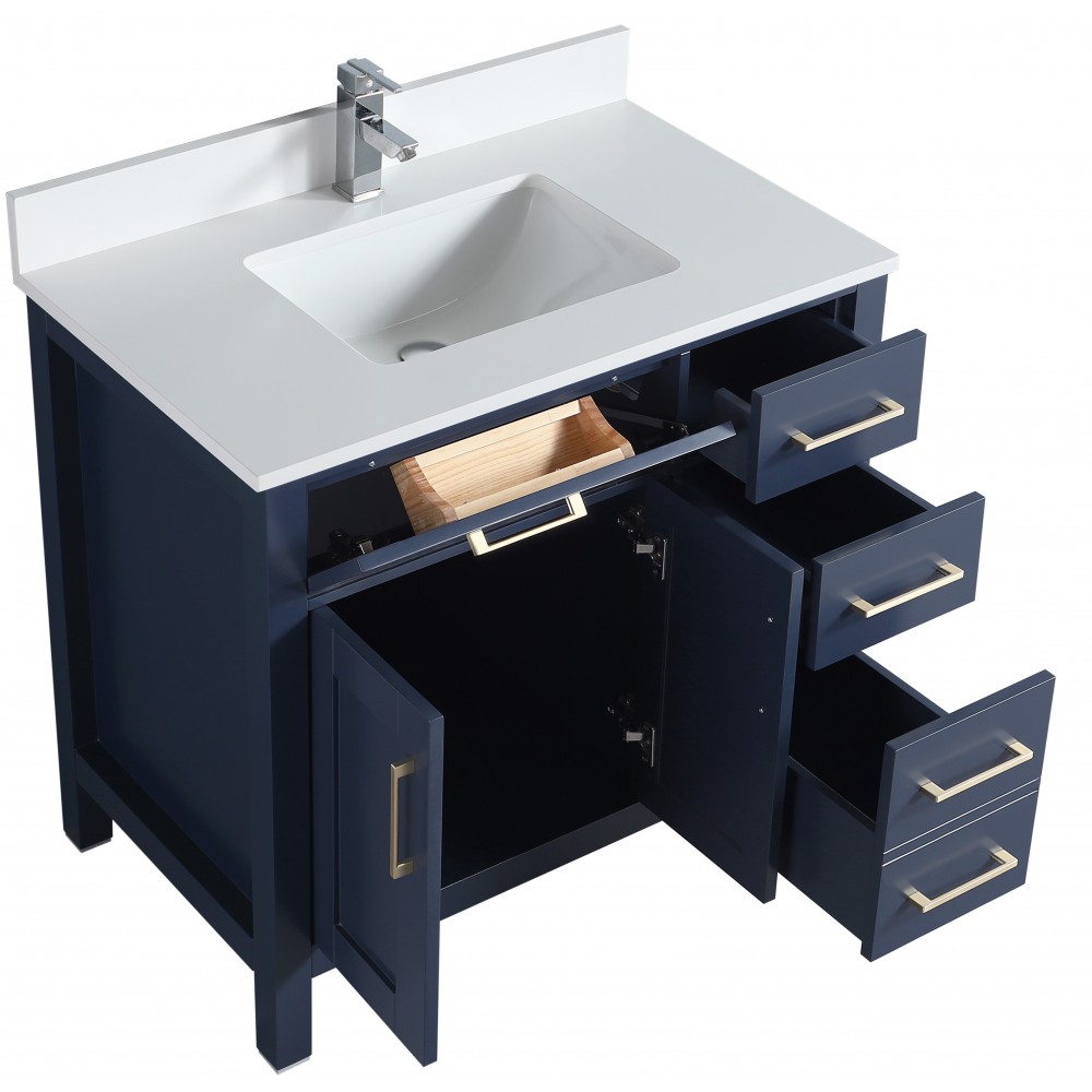Vanité de salle de bain Goli 36'' – bois massif bleu antique