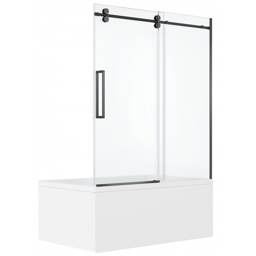 Porte de douche sur bain Myo, fini noir mat,  en verre trempé 10mm