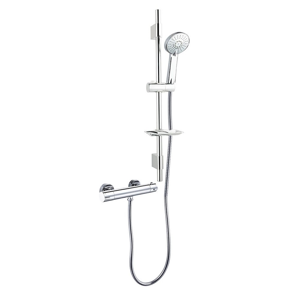 Améliorez l'allure de votre douche avec ce robinet de douche avec barre coulissante pour l'ajustement de hauteur de la douche, une douchette à deux fonctions en ABS chrome. L'ensemble comprend également une plaque à savon en ABS, un tuyau flexible en chrome de 1.5 mm certifié cUPC et un sélecteur de douche thermostatique chrome L21T pour une utilisation facile. Robinet de bain non inclus.