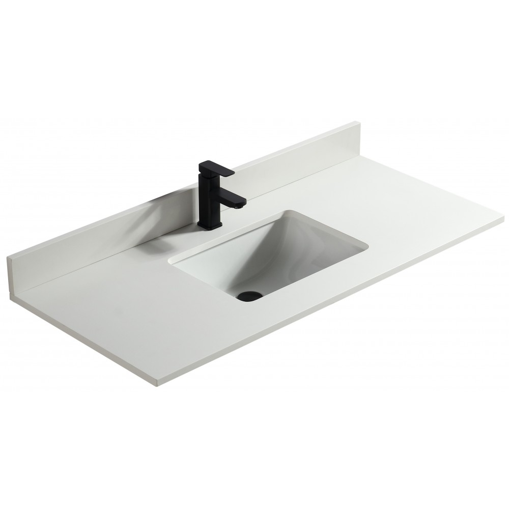 Dessus de vanité en quartz blanc pure 36 pouces avec lavabo sous-plan en porcelaine