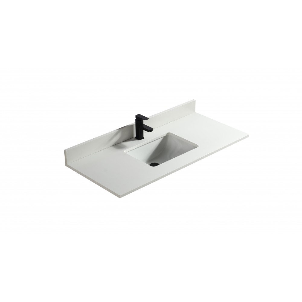 Dessus de vanité 48" en quartz de 3/4" d'épaisseur, avec lavabo en porcelaine sous-plan.