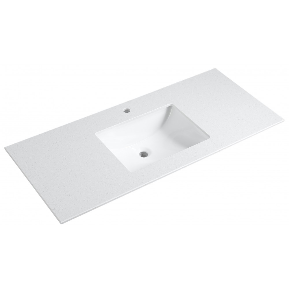 Dessus de vanité 48" en marbre artificiel avec bassin sous-comptoir en céramique.