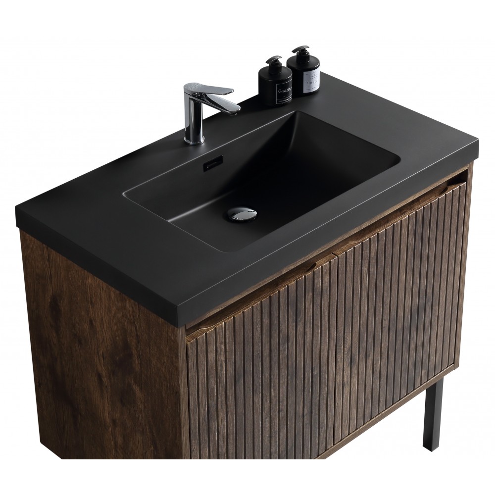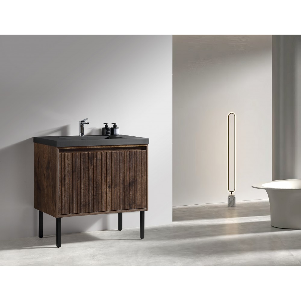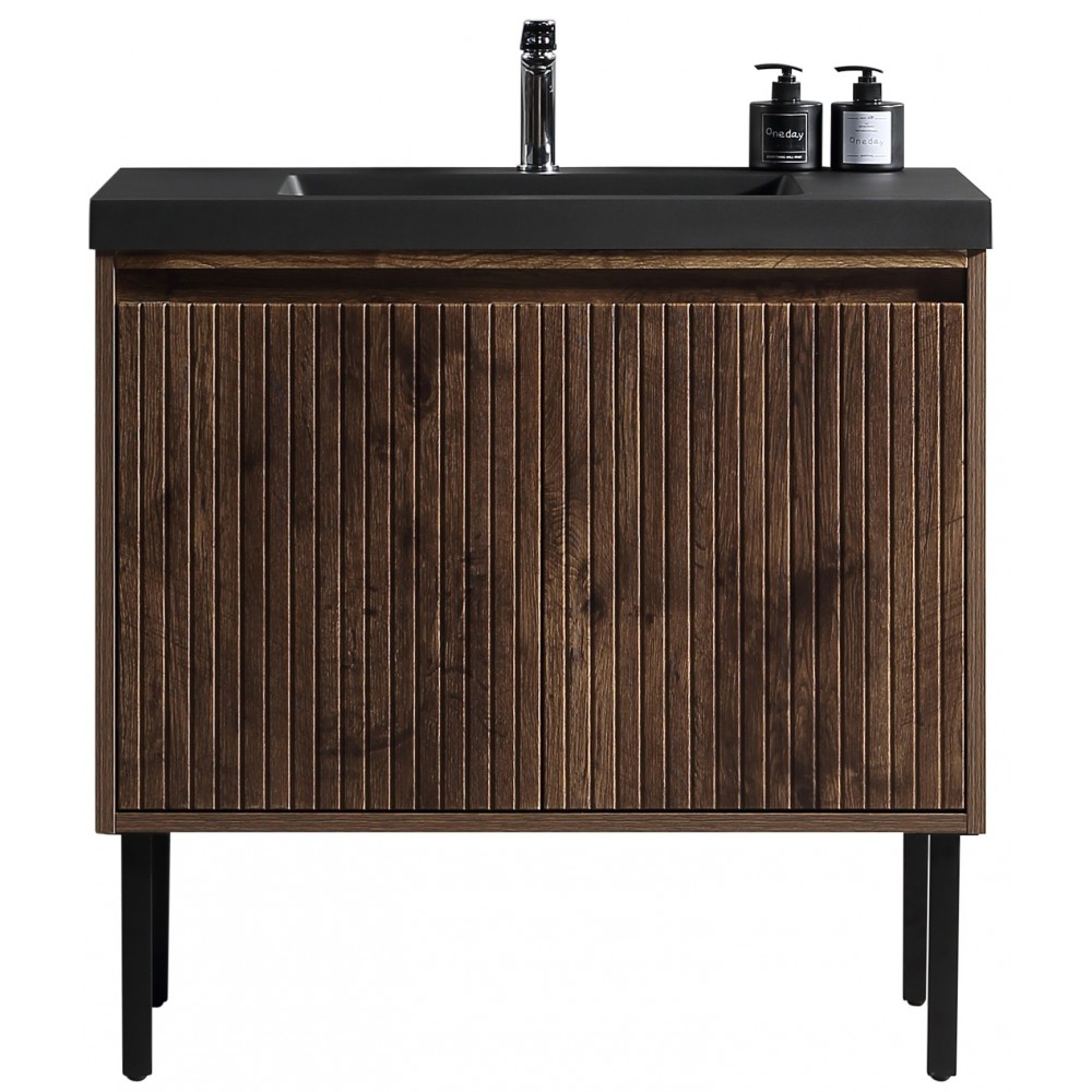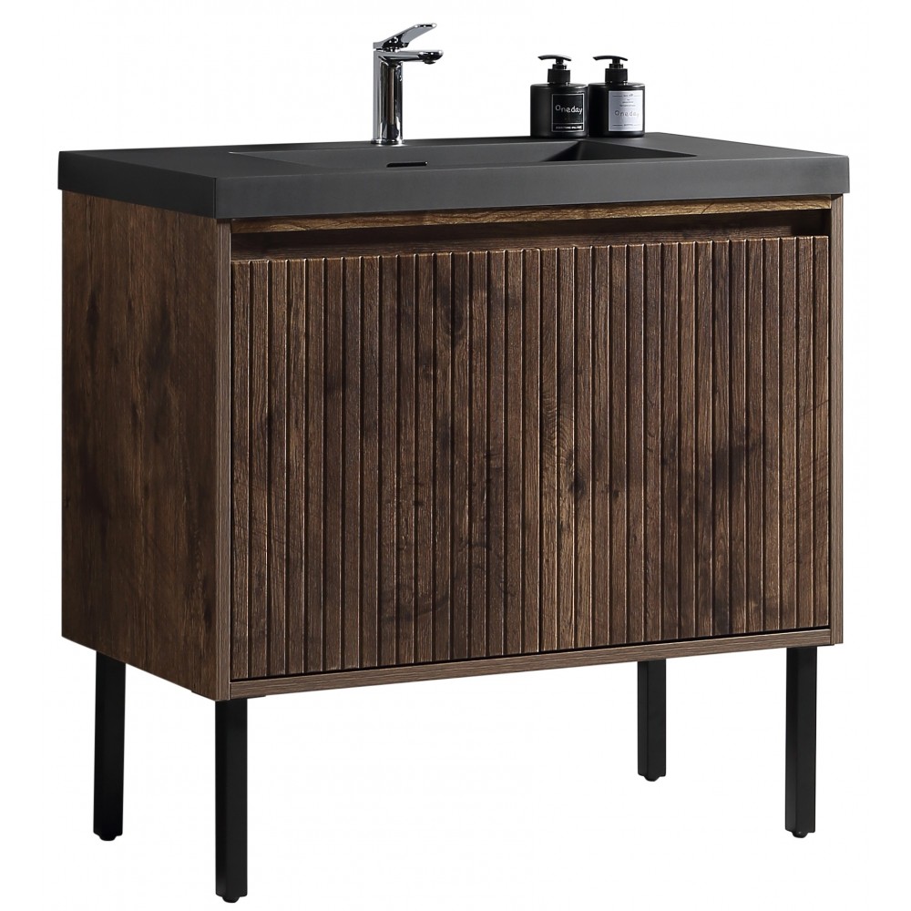 Vanité Axel 36″ au design moderne avec structure en bois d'ingénierie et pieds en acier inoxydable.
