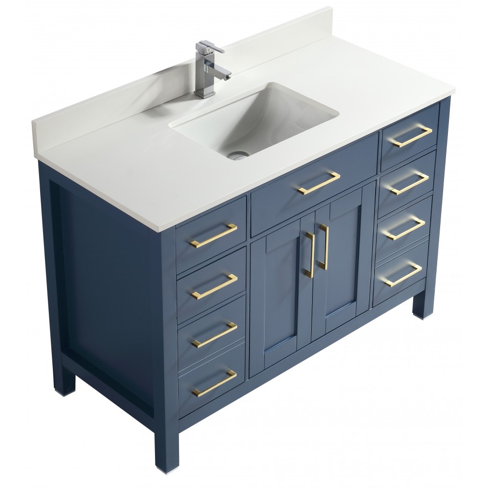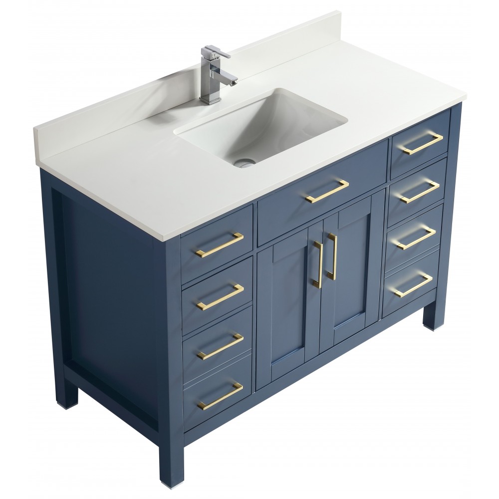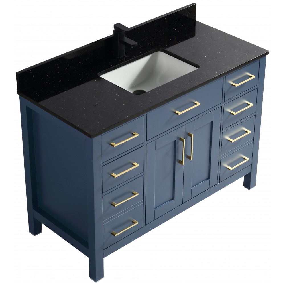 Vanité de salle de bain Goli 48'' – bois massif bleu antique
