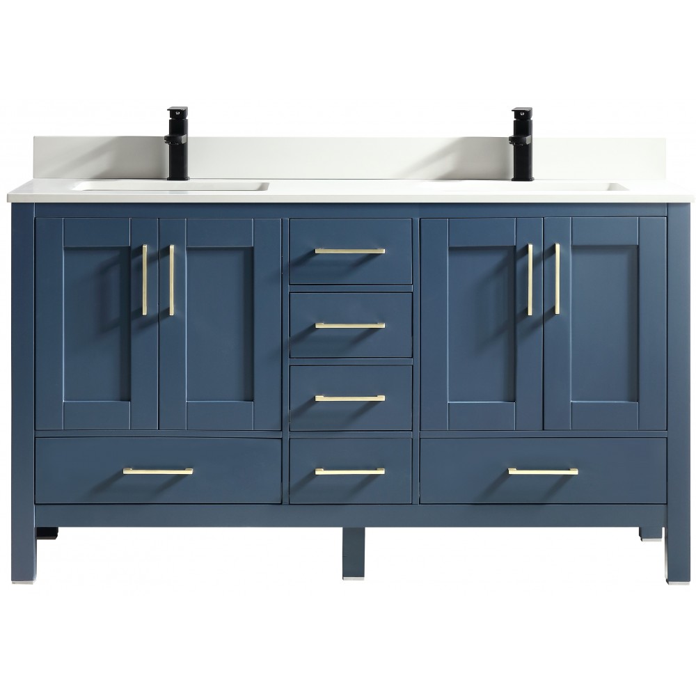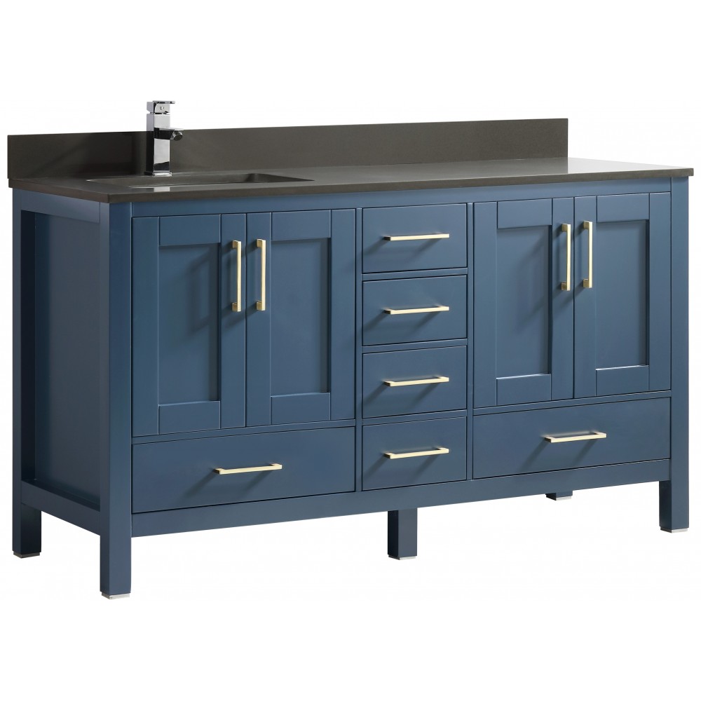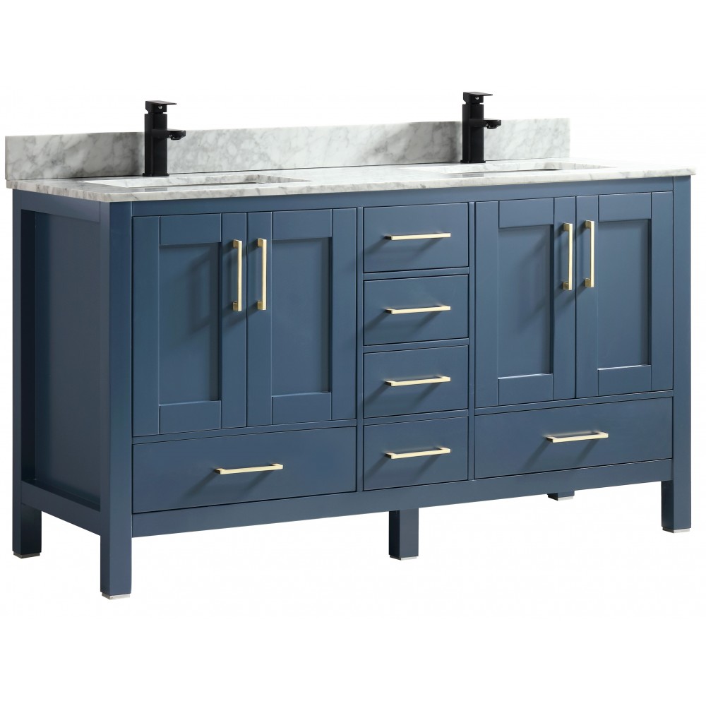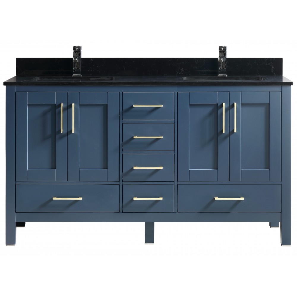 Vanité de salle de bain Goli 60'' – bois massif bleu antique