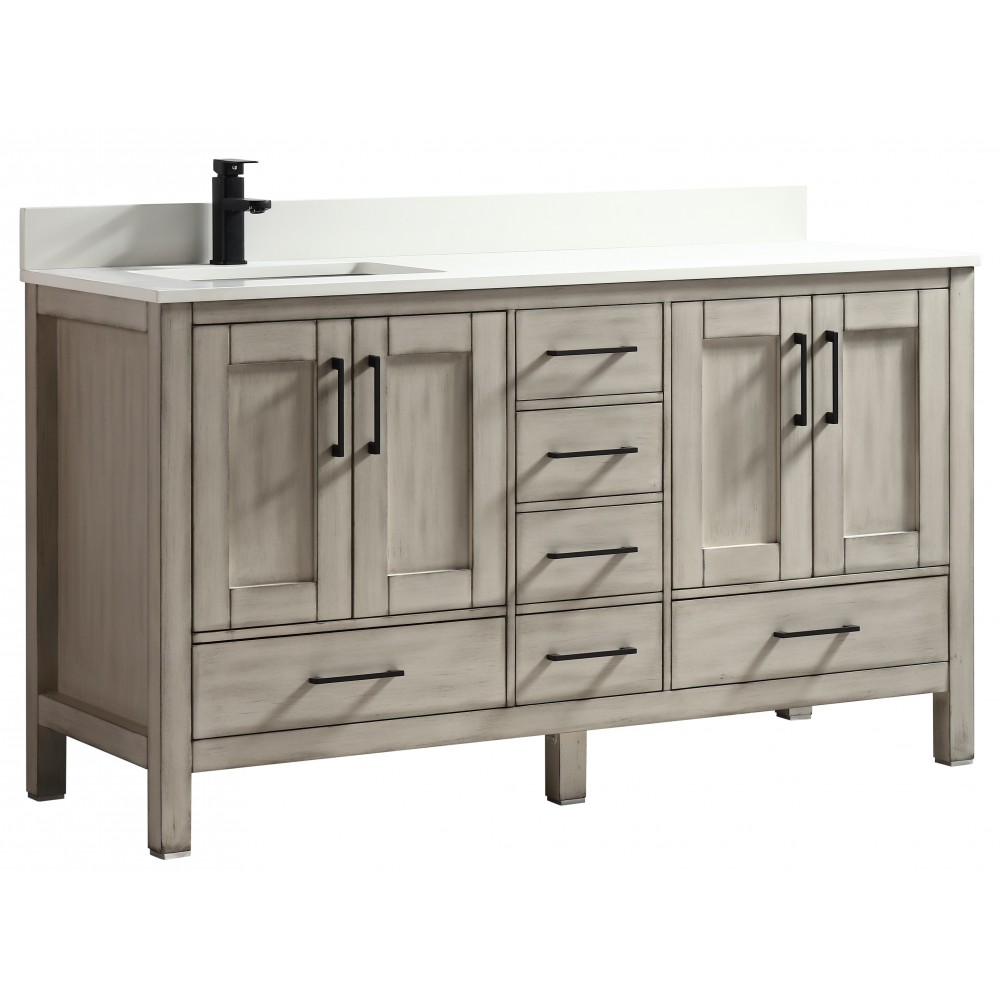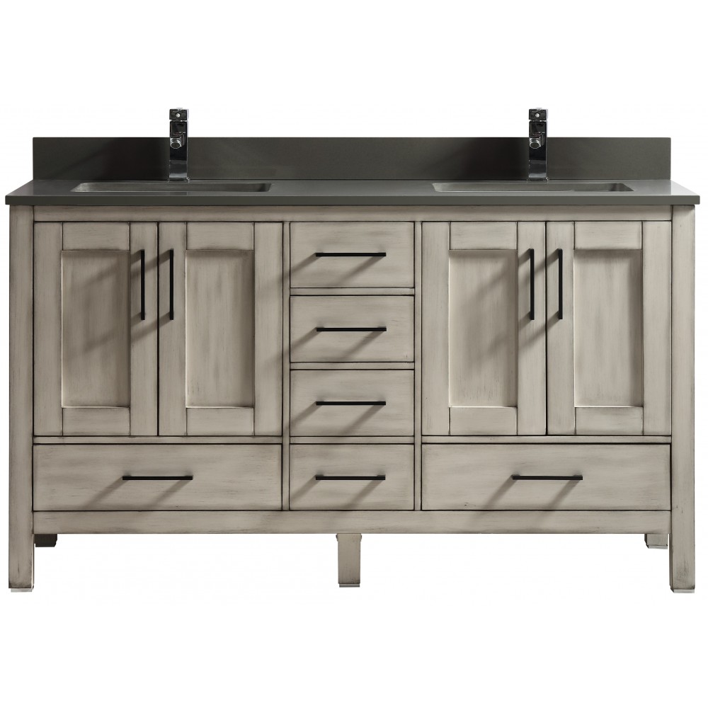 Vanité de salle de bain Goli 60'' – bois massif gris antique
